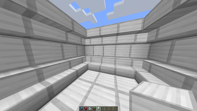 Vous pouvez varier les textures selon leur position sur l’escalier. Personnellement, je préfère avoir une harmonie et j’ai décidé d’utiliser la texture de base du bloc de fer de Minecraft. Vous pouvez cependant décider d’utiliser un autre bloc comme référence. Par exemple :