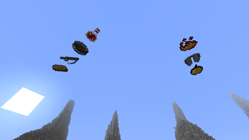 - le festin contenant de nombreux éléments utiles au PvP, les joueurs vont naturellement chercher à y aller. La limite de map va de toute façon se réduire sur le festin une fois ce dernier entièrement généré, pour forcer les joueurs à s’y retrouver.