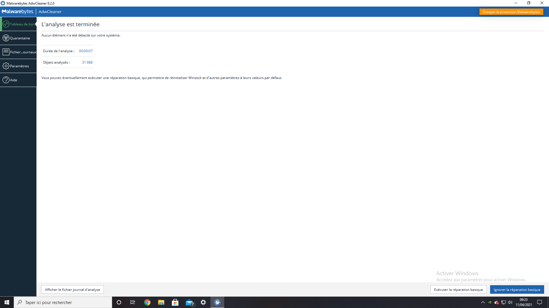 Donc aucun problème d’adware en tout cas.