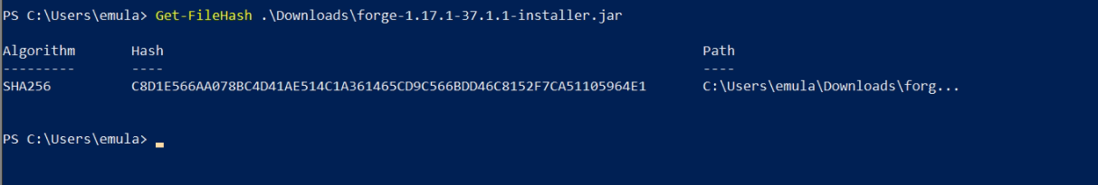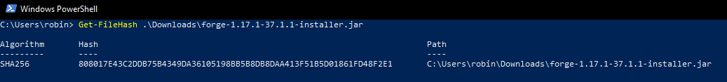 Get-FileHash .\Downloads\forge-1.17.1-37.1.1-installer.jar