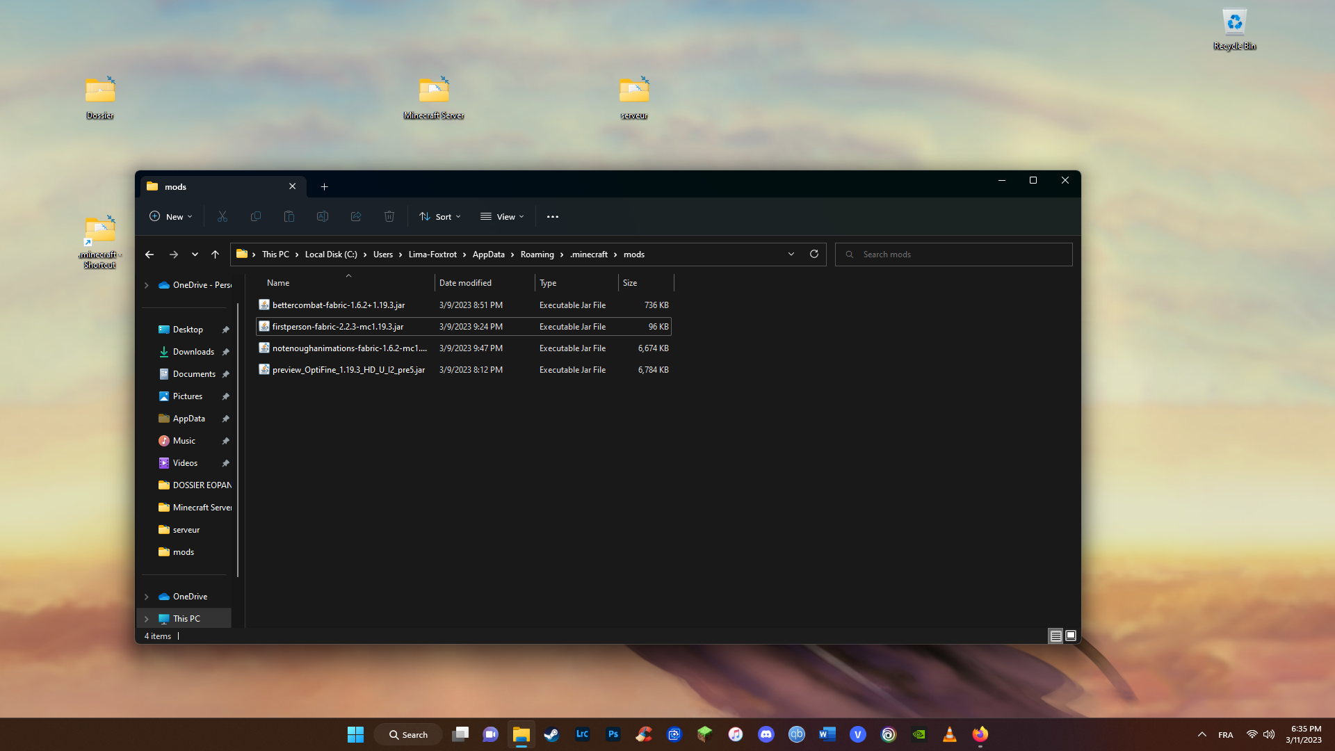Peux-tu envoyer une capture d’écran du contenu de ton dossier mods ? -