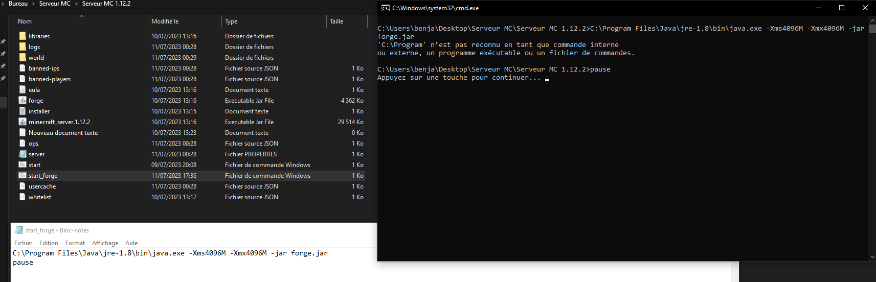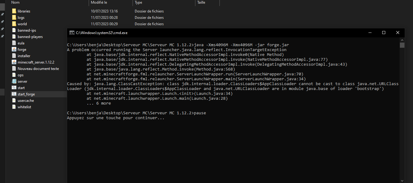 1.12.2 rien ne se passe avec forge quand je clique dessus pour modder un serveur
